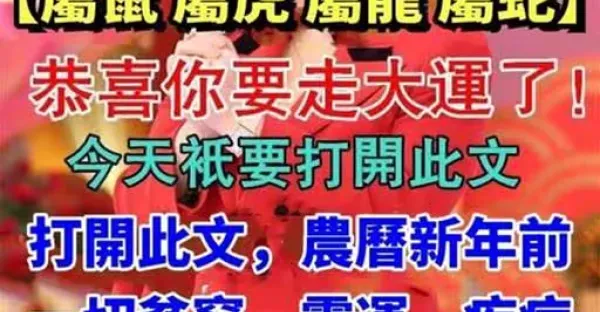 【屬鼠 屬虎 屬龍 屬蛇】恭喜你要走大運了! 打開此文,農曆新年前一切貧窮、 霉運、疾病統統送走!