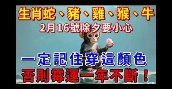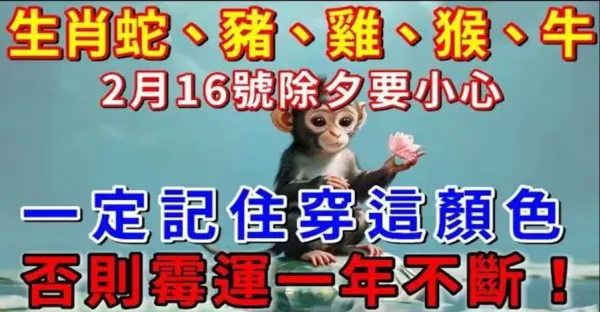 2月16號除夕是「凶日」,生肖蛇、豬、雞、猴、牛,一定記住穿這顏色,否則霉運一年不斷