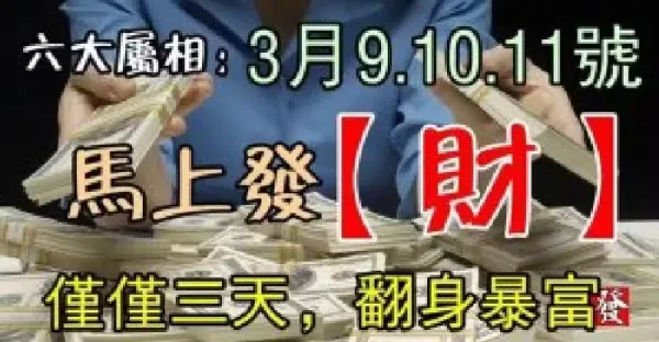 3月9號10號11號橫財運暴漲,享富貴50年的生肖!