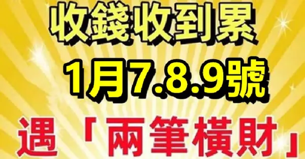 1月6 到 7號 (今天明天)三生肖財運偏旺,橫財進門