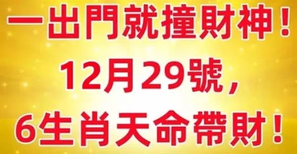 一出門就撞財神!12月29號,六生肖天命帶財!