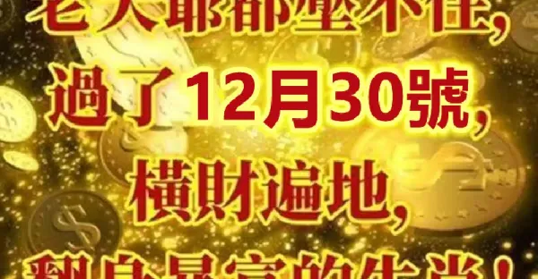 12月29號~31號:接財神 ,迎貴人,接橫財的生肖!