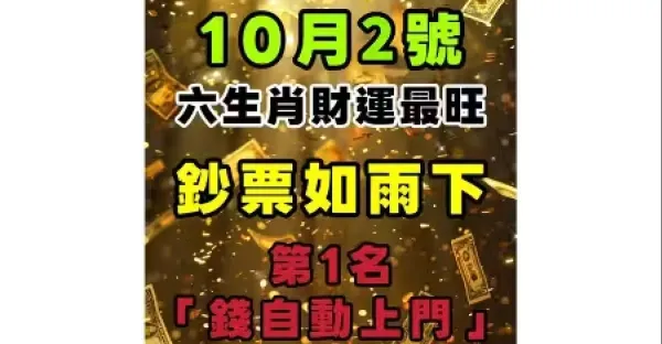 【10月2日】六生肖財運最旺 ,鈔票如雨下!第一名「 錢自動上門 ~」