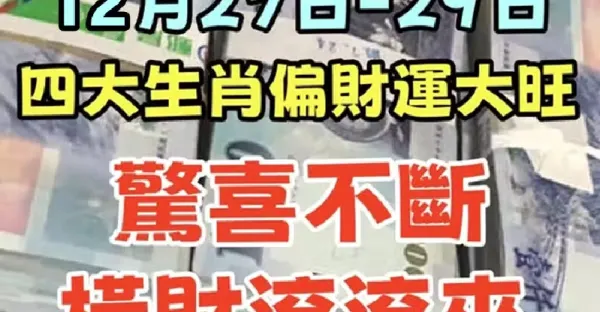 12月27日 到 29日,四大生肖偏財運大旺,驚喜不斷,橫財滾滾來!