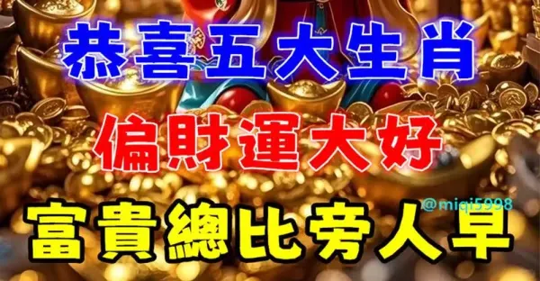 恭喜五大生肖偏財運大好,富貴總比旁人早