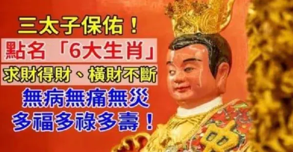 三太子保佑!點名「6大生肖」求財得財、橫財不斷 「無病無痛無災」多福多祿多壽