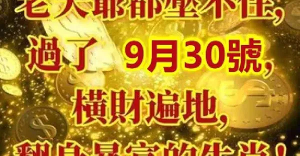老天爺都壓不住,過了9月30號橫財遍地,翻身暴富的生肖! !