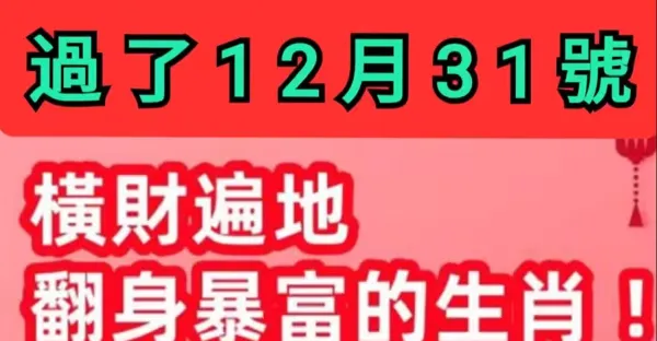 過了12月31號 橫財遍地 翻身暴富的生肖