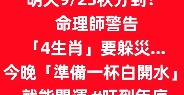 明天9/23秋分到! 命理師警告「4生肖」要躲災...今晚「準備一杯白開水」就能開運 #旺到年底
