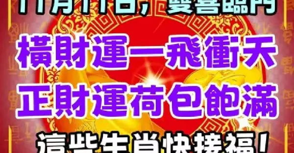 11月11日,雙喜臨門,橫財運一飛沖天,正財運荷包飽滿,這些生肖快接福!!