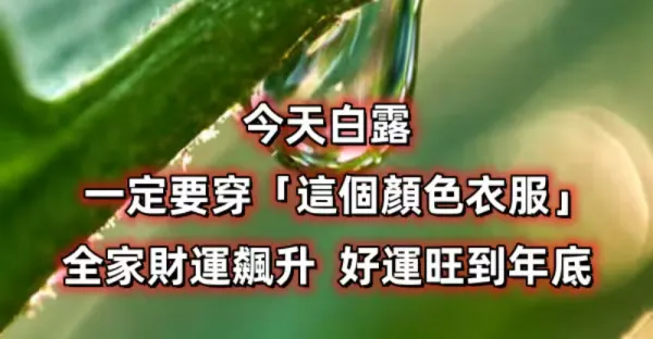 今天白露,一定要穿「這個顏色的衣服」全家財運飆升,好運旺到年底...