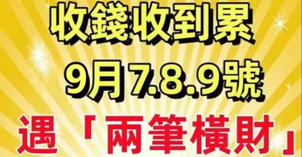 收錢收到累!9月7.8.9號遇「兩筆橫財」五大生肖日子一順百順