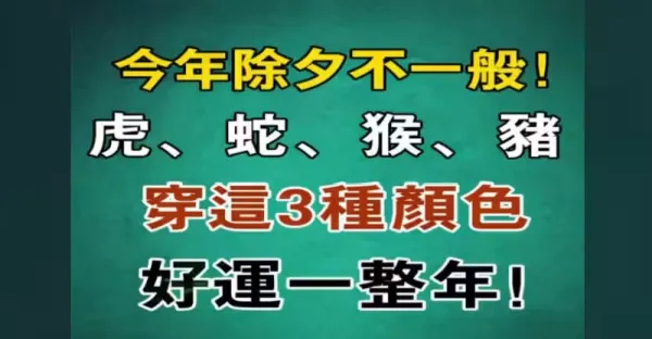 今年除夕不一般!!! 虎、蛇、猴、豬,穿這3種顏色, 好運一整年