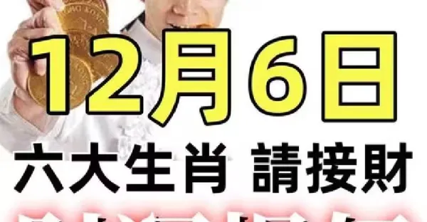 六大生肖運勢飄紅: 12月6號偏財旺,7號發橫財,8號中頭獎 !