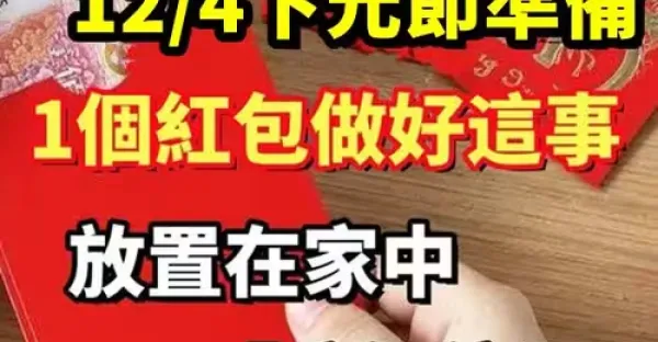 就在明天12/4下元節,準備「1個紅包做好這事」放置在家中這個位置,招橫財走好運