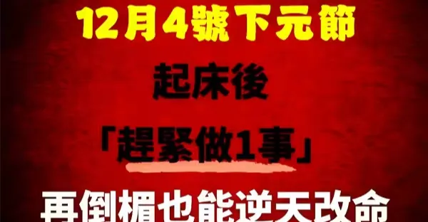 30年一次!12月4日下元節,起床後「趕緊做一事」 再倒楣也能逆天改命, 絕處逢生乞丐變富豪