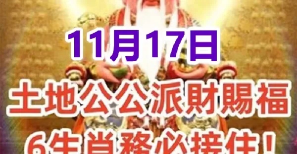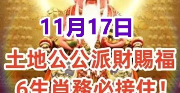 11月17日:土地公公派財賜福,6生肖務必接住!接了就有頭獎中.