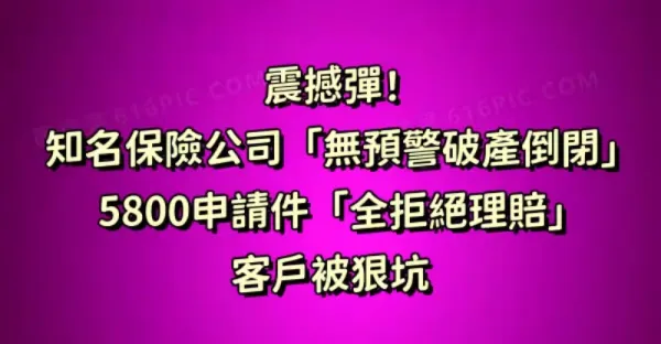 震撼彈!知名保險公司「無預警破產倒閉」!5800申請件「全拒絕理賠」客戶被狠坑!