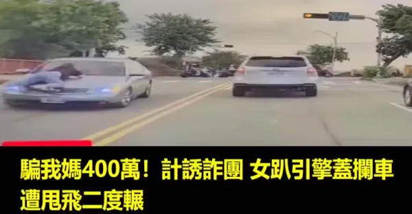 騙我媽400萬!計誘詐團 女趴引擎蓋攔車遭甩飛二度輾