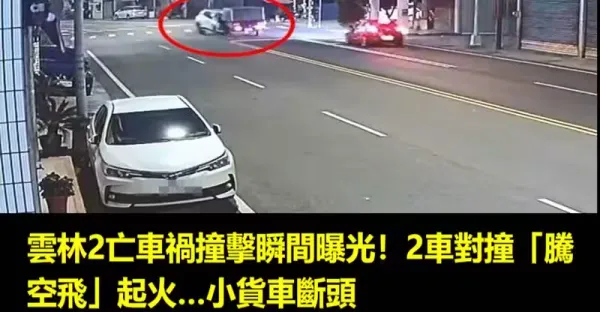雲林2亡交通事故撞擊瞬間曝光!2車對撞「騰空飛」起火…小貨車斷頭