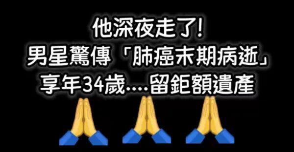 他深夜走了!男星驚傳「肺癌末期病逝」,享年34歲....留鉅額遺產
