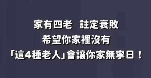 「家有四老,註定衰敗!!」:希望你家裡沒有「這4種老人」,會讓你家無寧日