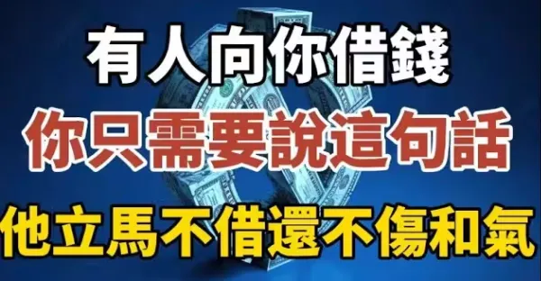 有人向你借錢時 第一句話不要問借多少!而是要這樣回答 他不但立馬不借 還不傷和氣!!