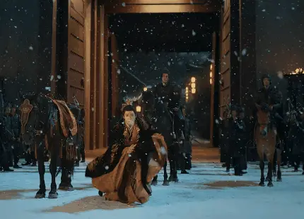 宋一夢溫柔、深情,在風雪中含著淚走上城樓,神色悲憫,破碎感拉滿。