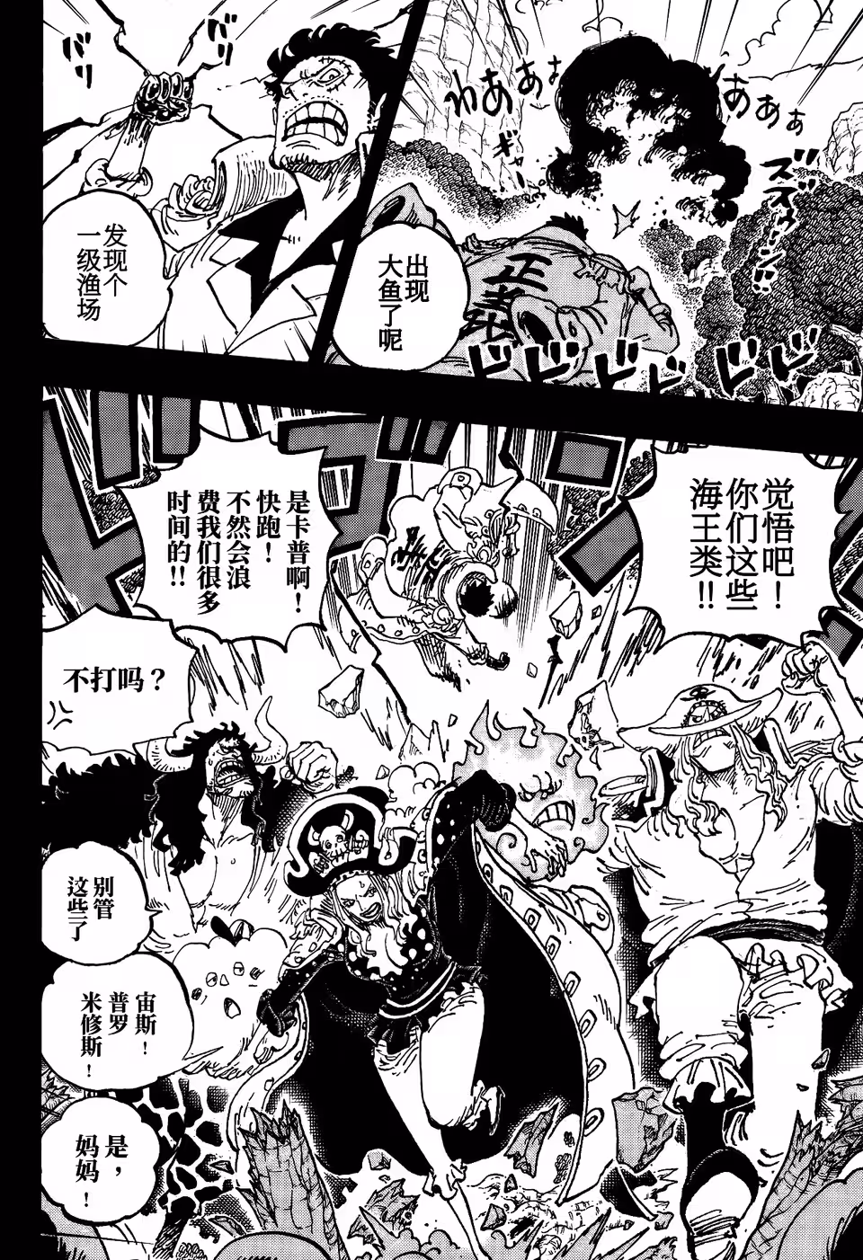 白鬍子一刀過去,瑪菲宮就被攔腰截斷,他無意間救出了龍,大媽以為白鬍子瞄準了自己,就跟白鬍子爭吵起來。金獅子,凱多等人也過來了,他們很快就被洛克斯海賊團的小嘍囉包圍,他們都盯上了洛克斯海賊團的幹部,想要幹掉這些幹部,他們就可以名揚天下了。