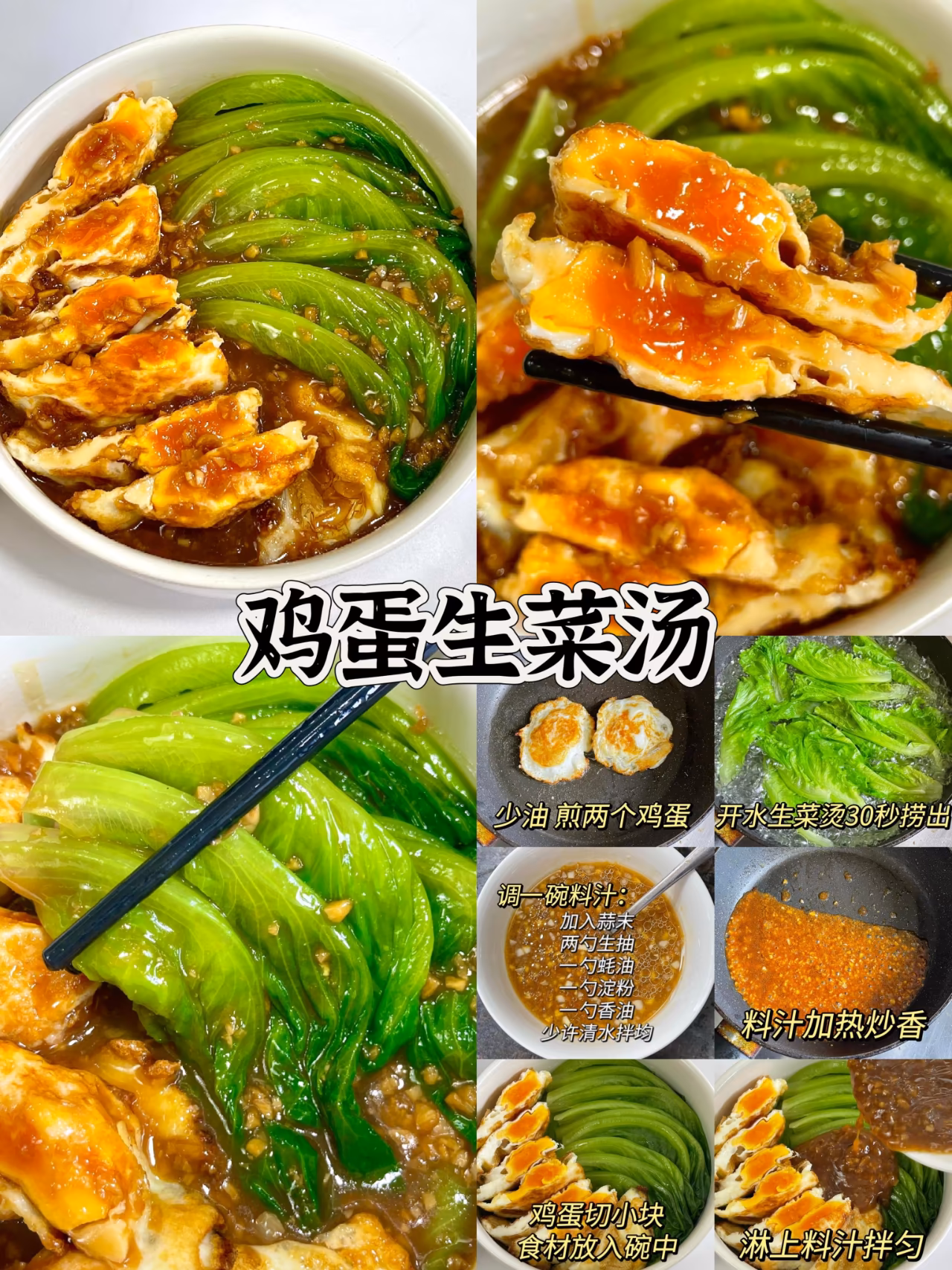 ✅第三款:雞蛋生菜湯 準備食材:生菜、雞蛋、蒜末 配料:生抽、蚝油、澱粉、香油