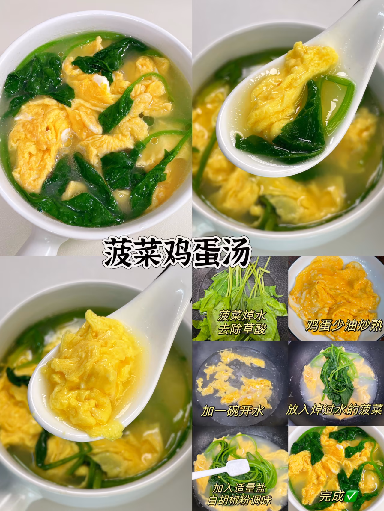 ✅第六款:菠菜雞蛋湯 準備食材:雞蛋、菠菜 配料:食鹽、白鬍椒粉