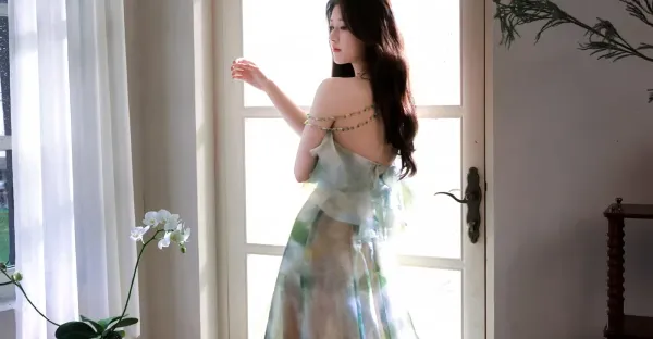 趙露思的春日寫真,一襲暈染青色紗裙,柔美靈動甜笑可人