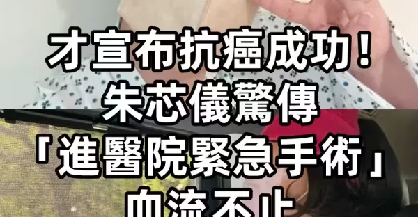 才宣布抗癌成功!朱芯儀驚傳「進醫院緊急手術」血流不止 老公親曝病況:「很無力」