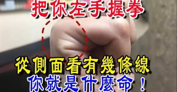 神准!把你左手握拳,從側面看有幾條線,你就是什麼命!算命的看完都說准‼️