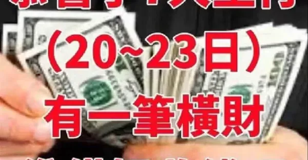 恭喜了7大生肖,在未來三天( 1月20~23日)即將有一筆橫財!準備好收錢吧!!